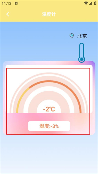 3、在溫度計(jì)頁(yè)面,可查看當(dāng)前定位對(duì)應(yīng)的溫度、濕度等環(huán)境數(shù)據(jù)。
