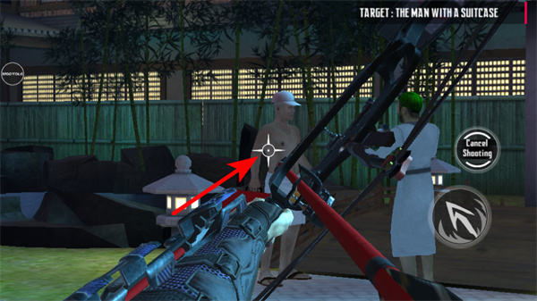1、在射擊關(guān)卡中,瞄準(zhǔn)任務(wù)指定的目標(biāo)如攜帶箱子的人物,調(diào)整準(zhǔn)星位置確保精準(zhǔn)鎖定,再執(zhí)行射擊操作完成擊殺,推進(jìn)任務(wù)進(jìn)度。