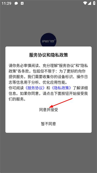 1、進入伊枕入夢后,點擊同意并接受,進入登錄頁面。
