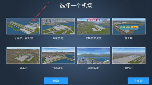 1、進(jìn)入機(jī)場游戲后,選擇一個飛機(jī)場進(jìn)入游戲模式選擇界面。