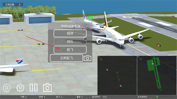 3、點(diǎn)擊進(jìn)入跑道的飛機(jī)彈出菜單,可以選擇飛機(jī)將要執(zhí)行的指令。
