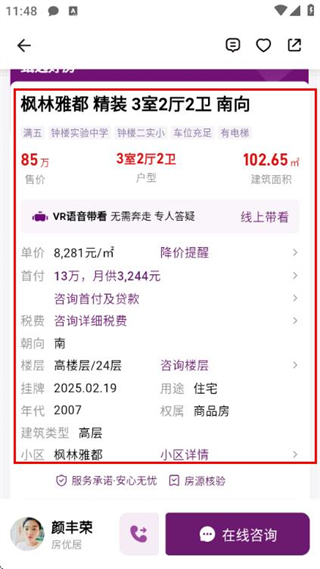 2、在二手房房源列表頁面點擊目標(biāo)房源,進入該房源的詳情頁面。
