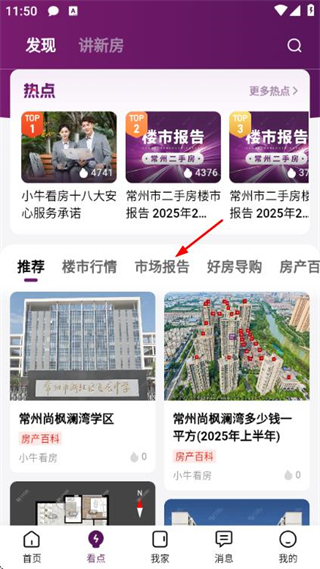 2、在看點頁面點擊市場報告選項,切換到市場報告板塊。