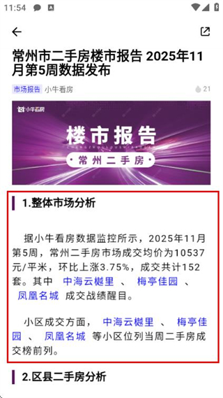 4、在樓市報告詳情界面,即可看到市場分析數(shù)據(jù)等資訊。