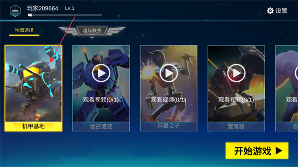 1、進入游戲后,點擊地圖進行選擇,后續(xù)地圖可以通過觀看視頻進行解鎖,選擇完地圖點擊右下角開始游戲即可進入。