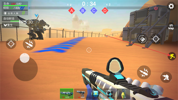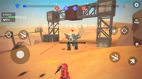 4、當被敵方玩家機器人擊殺后,可以進行復(fù)活,重新回到太空基地出發(fā)。
