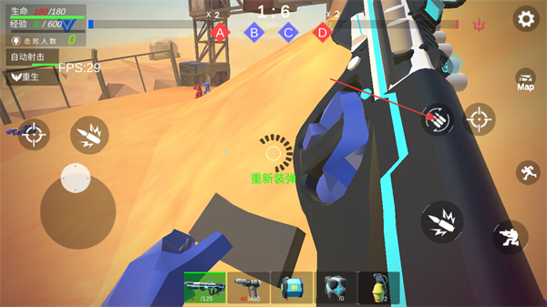 3、當槍械子彈用完后,點擊右側(cè)的換彈按鈕進行重新?lián)Q彈的操作。
