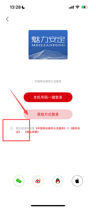 3、在登錄頁(yè)面,勾選協(xié)議后選擇對(duì)應(yīng)登錄方式完成登錄。