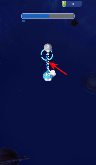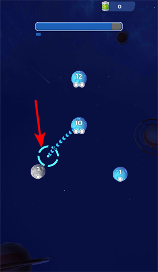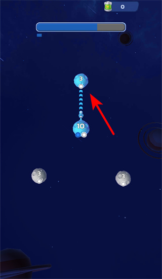4、選擇場景中數(shù)值匹配的星球如數(shù)值為3的星球,拖動建立連接,借助數(shù)值整合的規(guī)則提升己方星球的等級。