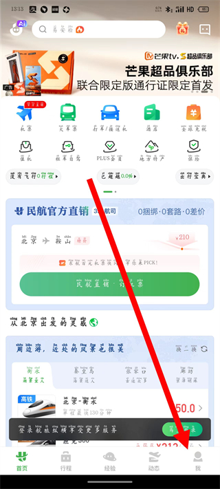 1、打開航旅縱橫,在主界面點(diǎn)擊底部我的,進(jìn)入我的頁面。