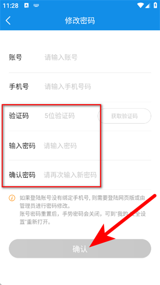 4、在輸入框中,輸入驗(yàn)證碼,設(shè)置并確認(rèn)新密碼后,點(diǎn)擊確認(rèn),完成密碼重置。