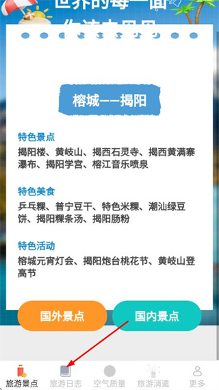 1、在旅游景點(diǎn)頁面點(diǎn)擊底部旅游日志選項(xiàng),進(jìn)入旅游日志頁面。