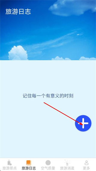 2、在旅游日志頁面點(diǎn)擊右側(cè)的藍(lán)色加號(hào)按鈕,進(jìn)入日志編輯頁面。