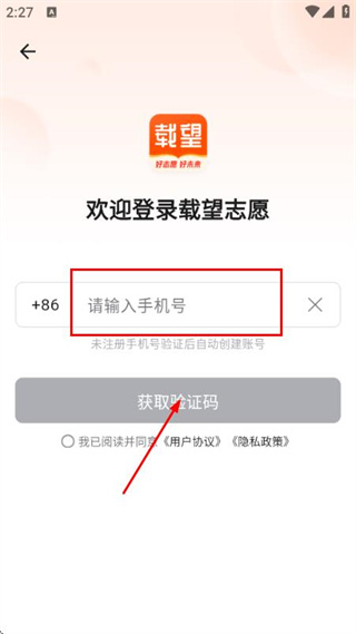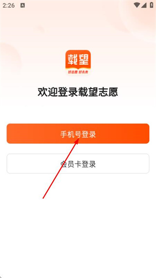 1、進入載望志愿,點擊手機號登錄,進入手機號登錄頁面。