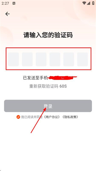 3、在驗證碼輸入框中填寫收到的驗證碼,點擊登錄完成賬號的登錄操作。