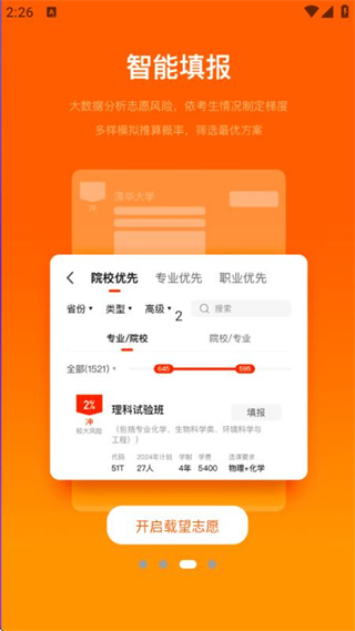 載望志愿是覆蓋全國院校及專業(yè)的高考志愿填報服務軟件,依托教育部與各省教育考試院官方數(shù)據,整合高校招生計劃、錄取分數(shù)線、就業(yè)數(shù)據等核心信息,構建多維度數(shù)據資源庫,通過動態(tài)更新數(shù)據與優(yōu)化算法模型,提供從志愿填報到生涯規(guī)劃的全流程服務,助力考生降低滑檔風險,避免高分低就,實現(xiàn)分數(shù)價值最大化。