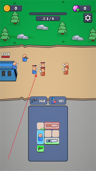 3、完成合并后點(diǎn)擊戰(zhàn)斗,進(jìn)入波2/9的戰(zhàn)斗關(guān)卡。