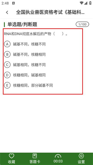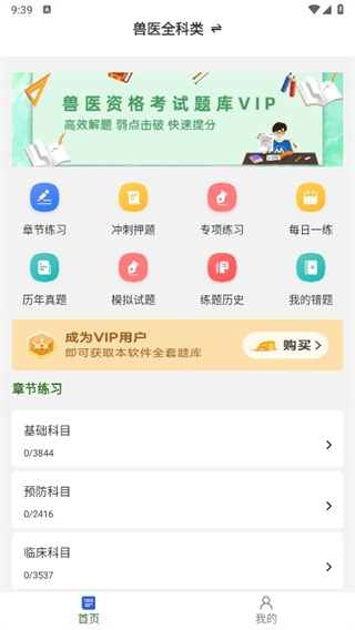 嚴(yán)格依據(jù)全國執(zhí)業(yè)獸醫(yī)資格考試大綱,覆蓋基礎(chǔ)、預(yù)防、臨床、綜合應(yīng)用四大科目全考點(diǎn),題庫類型全面,從基礎(chǔ)積累到考前沖刺均能滿足,備考針對性極強(qiáng)。