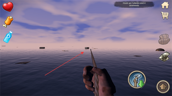 2、使用鉤子瞄準(zhǔn)海上物資,發(fā)射鉤子鉤取目標(biāo)物品。