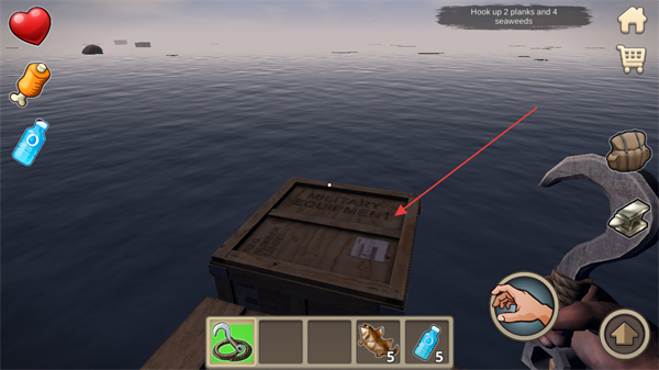 4、鉤取木箱類物資,打開可獲取更多資源,推進(jìn)生存進(jìn)度。