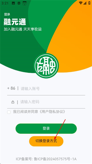 1、在融元通首頁,點擊底部的我的選項,進入登入頁面。