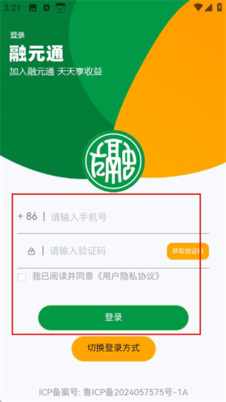 2、在登錄頁面,點擊切換登錄方式選項,切換至驗證碼登錄界面。