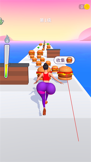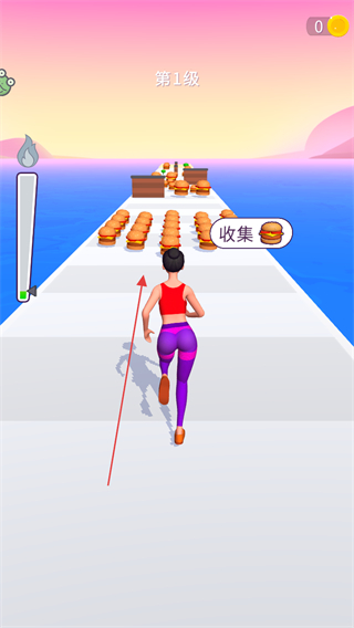 1、進入第1級,操控角色向前奔跑,收集道路上的漢堡。