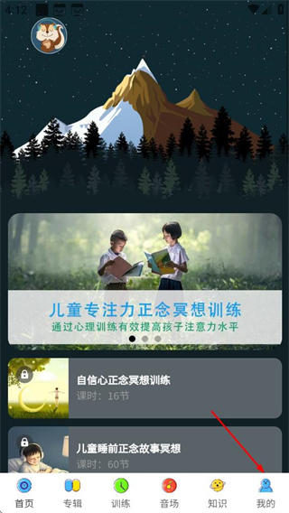 1、在松果兒童正念的首頁,點(diǎn)擊底部的我的選項(xiàng),進(jìn)入個(gè)人中心頁面。