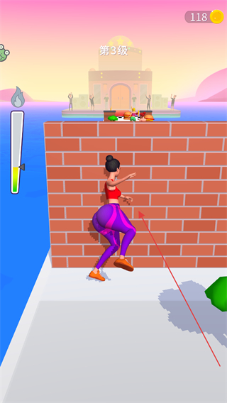 1、在第3級中,操控體型變大的角色攀爬磚墻,突破障礙繼續(xù)前進。