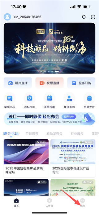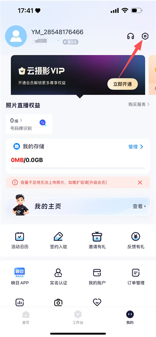 1、在映目云攝影首頁,點(diǎn)擊底部的我的,進(jìn)入個(gè)人頁面。
