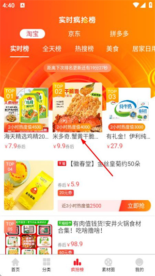 2、在實(shí)時(shí)瘋搶榜頁面點(diǎn)擊目標(biāo)商品,進(jìn)入該商品的詳情頁面。