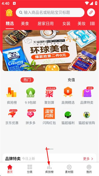 1、在該首頁點(diǎn)擊底部的瘋搶榜選項(xiàng),進(jìn)入實(shí)時(shí)瘋搶榜頁面。