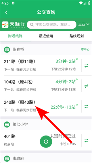 2、在公交查詢頁面,選擇目標(biāo)線路,進(jìn)入該線路詳情頁。