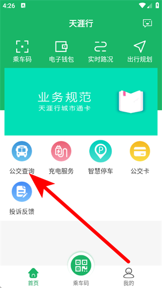 1、打開三亞天涯行,在主界面點(diǎn)擊公交查詢功能入口,進(jìn)入公交查詢頁面。