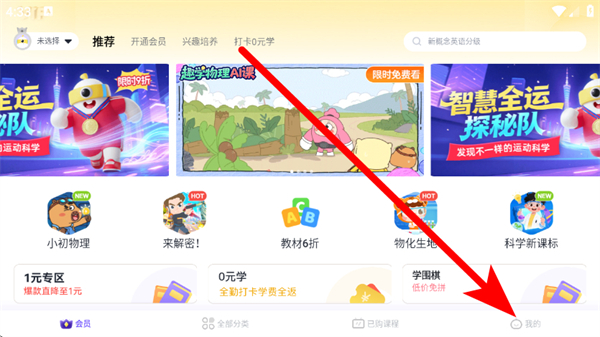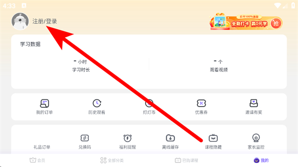1、打開(kāi)小燈塔學(xué)堂,在主界面點(diǎn)擊底部我的,進(jìn)入個(gè)人中心頁(yè)面。