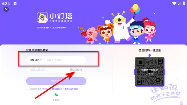 3、在登錄頁(yè)面,輸入手機(jī)號(hào),點(diǎn)擊獲取驗(yàn)證碼。