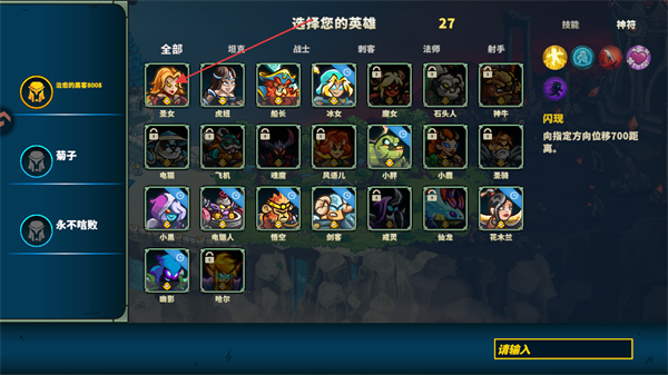 1、進入游戲?qū)趾螅婕铱梢栽谟⑿哿斜碇羞x擇想要使用的英雄。