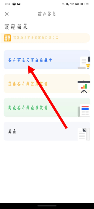 3、在選擇分類頁面,點(diǎn)擊會計(jì)專業(yè)人員繼續(xù)教育,進(jìn)入對應(yīng)頁面。