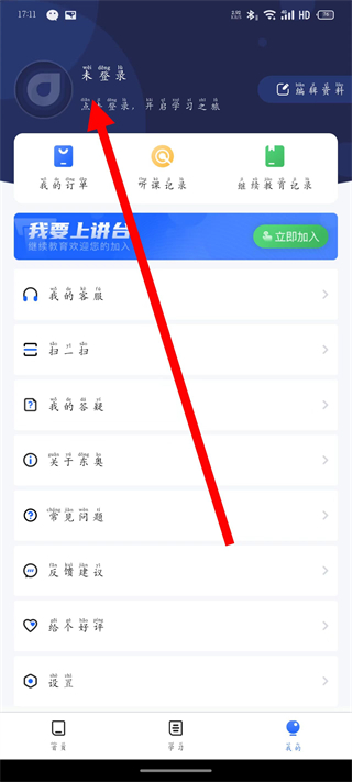 1、打開東奧繼教學(xué)堂,點(diǎn)擊底部的我的,進(jìn)入我的頁面。