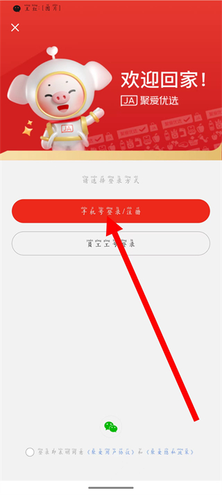 2、在個(gè)人頁面選擇登錄方式,點(diǎn)擊手機(jī)號(hào)碼登錄注冊(cè)。
