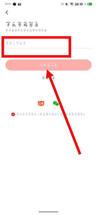 3、在手機(jī)號(hào)碼登錄頁面,輸入手機(jī)號(hào),點(diǎn)擊獲取驗(yàn)證碼。