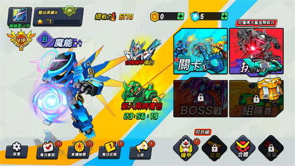 搭載炫酷的合體系統(tǒng),支持利用不同機甲碎片合體合成全新機甲,合體過程特效亮眼,新機甲不僅造型更獨特,戰(zhàn)力也會大幅提升,為機甲收集增添樂趣。
