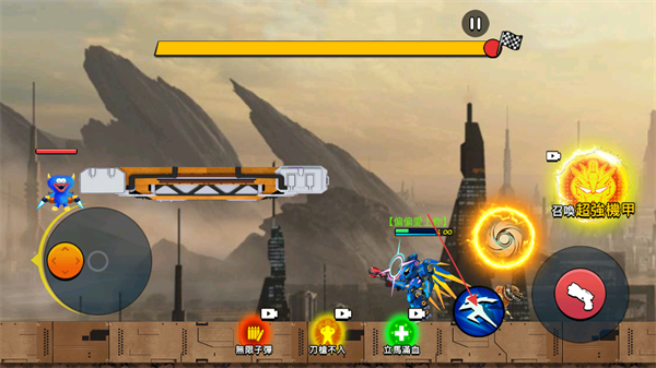 3、橫版戰(zhàn)斗中善用地形,借助障礙物躲避攻擊,找準間隙釋放機甲技能,減少戰(zhàn)斗損耗。