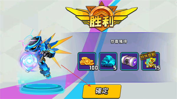 4、成功擊敗關(guān)卡內(nèi)的所有怪物后即為勝利,點擊確定按鈕領(lǐng)取獲勝獎勵并回到主頁。
