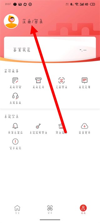 2、在我的頁面,點擊注冊登錄,進入登錄界面。