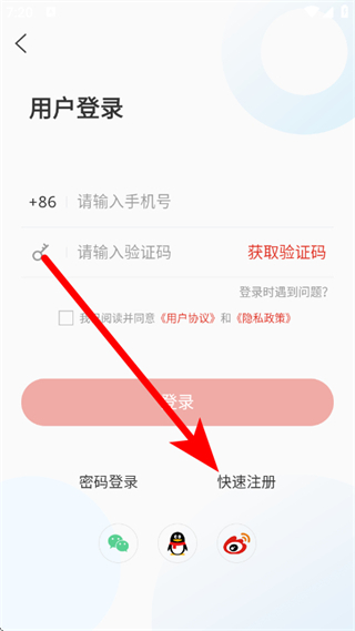 3、在用戶登錄頁面,點擊快速注冊,進入用戶注冊界面。