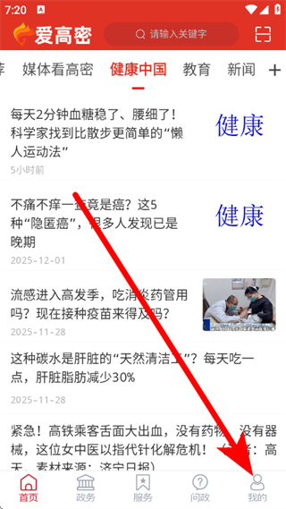 1、打開愛高密,點擊底部的我的,進入我的頁面。