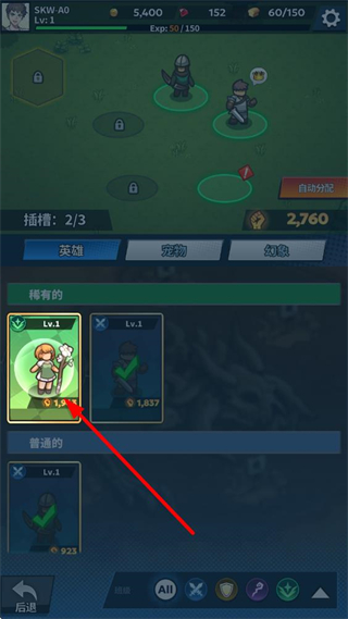 2、在編隊頁面選擇稀有的英雄,將其拖動到戰(zhàn)場的綠色空位中,完成陣容部署,提升陣型戰(zhàn)力。