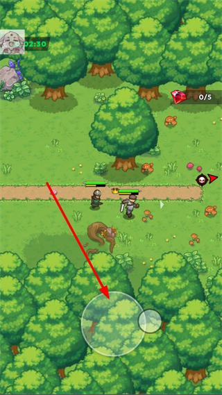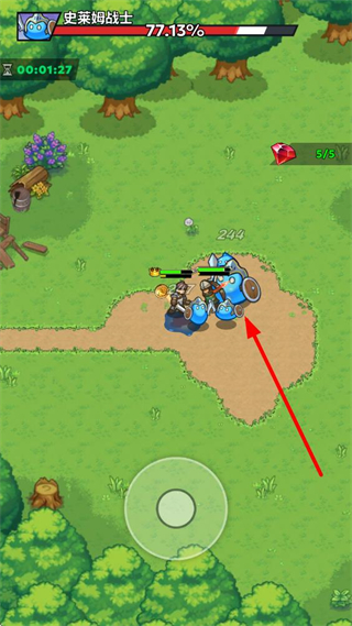 3、確認(rèn)陣容后點擊斗爭按鈕,進(jìn)入關(guān)卡戰(zhàn)斗界面,通過屏幕下方的控制按鈕操控隊伍移動。