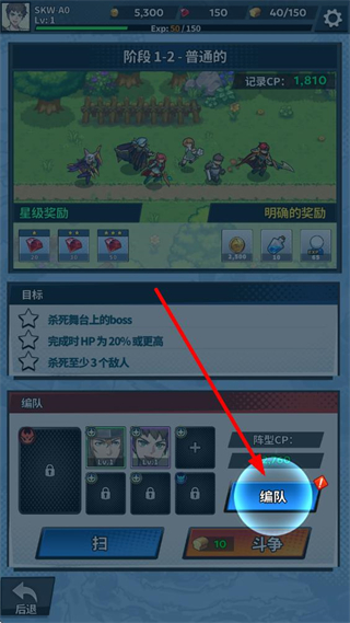 1、找到編隊按鈕并點擊,進(jìn)入英雄選擇頁面,挑選已解鎖的英雄準(zhǔn)備部署陣容。